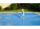 Bezpečnostná plachta na bazén je ideálnym riešením celoročného zakrytia bazéna v rátane zimy. Okrem požiadavky na bezpečnosť plní aj funkciu tepelnej izolácie a ochrany pred padajúcimi nečistotami. Plachta je vystužená hliníkovými nosnými rúrkami, leží na okrajoch bazéna a ukotvením do dlažby je navyše zabezpečená proti posunu. Vysoká pevnosť plachty je dosiahnutá použitím vnútornej spevňujúcej štruktúry. Celoročná bezpečnostná bazénová plachta je vhodná pre zapustené, čiastočne zapustené a nadzemné obmurované bazény všetkých tvarov a typov. Na rozdiel od bazénového zastrešenia, nenarúša vzhľad záhrady a z finančného hľadiska je jej nespornou výhodou tretinová cena oproti bazénovému zastrešeniu či lamelovému zakrytiu.