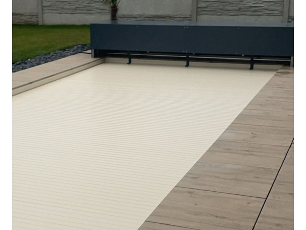 Vďaka priehľadným solárnym lamelám si ľudia môžu užívať svetlá v bazéne. Solárne transparentné lamely dodávajú modernejší nádych a dotvárajú design bazénu., koncovky barva lamely